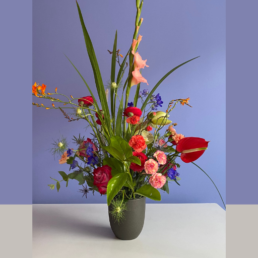 Variety of Colombian flowers in a pot